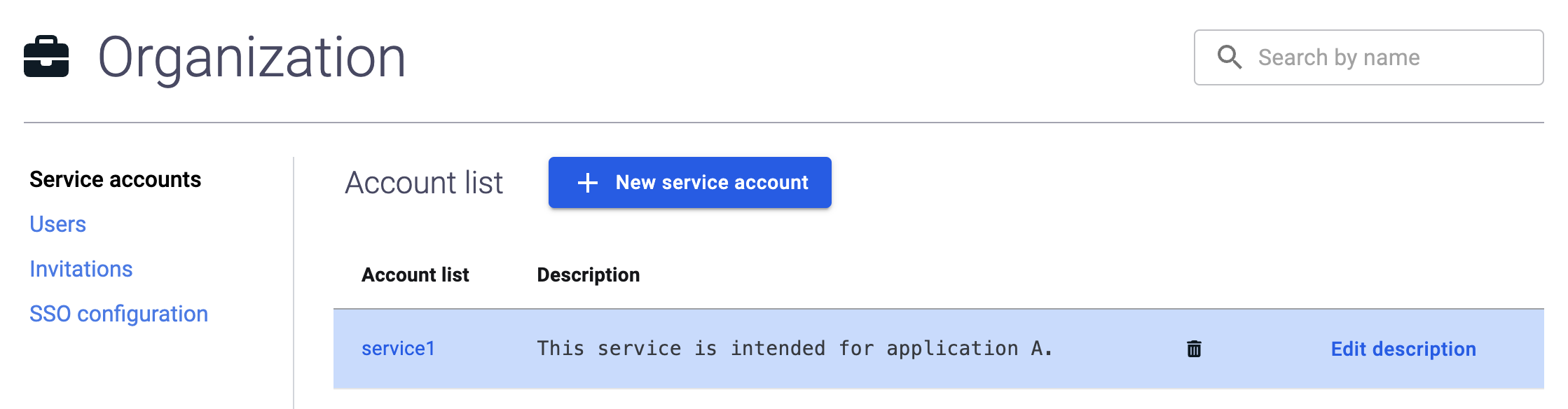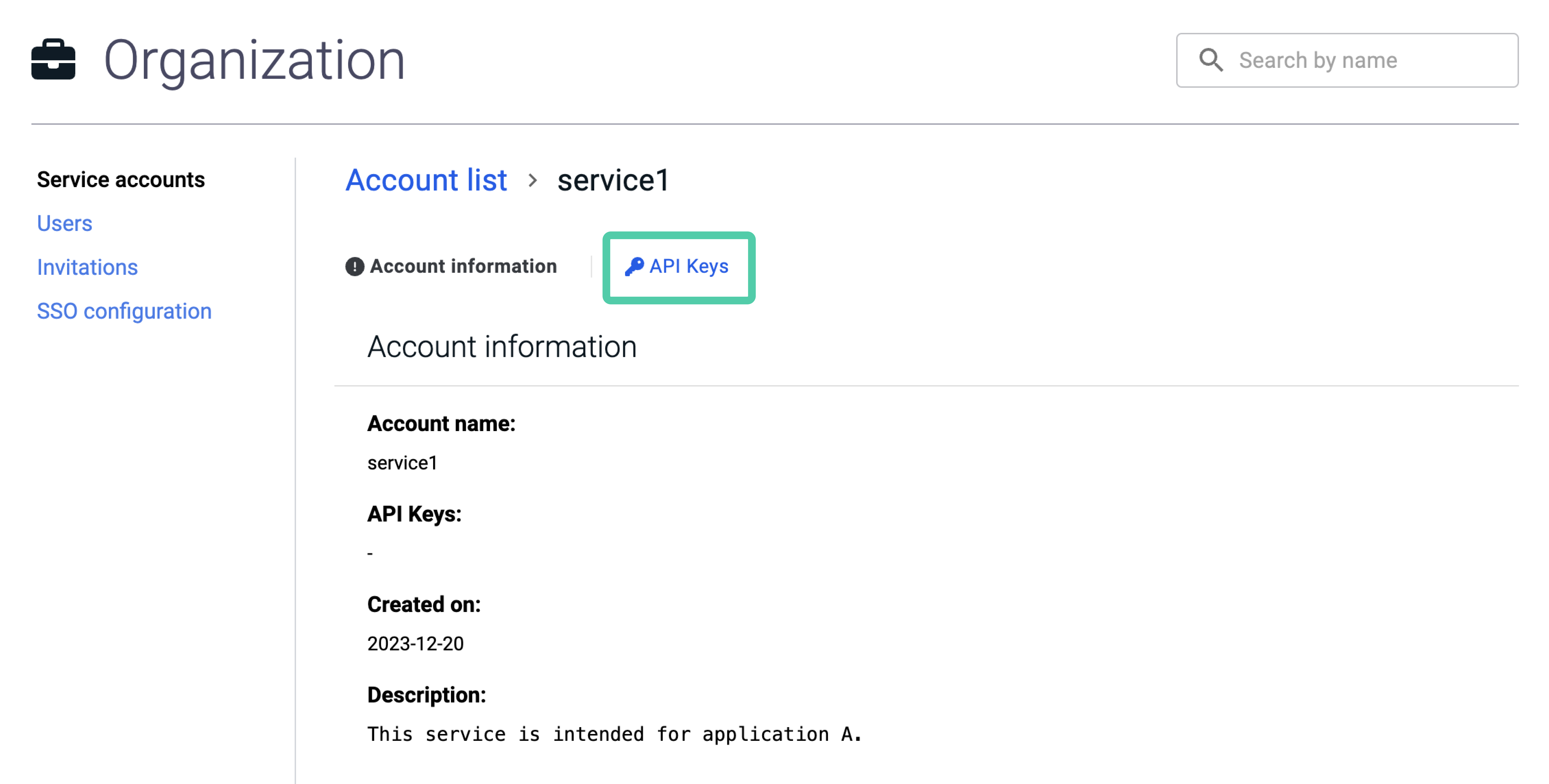 You can generate multiple API keys for a service account. Each API key will have a unique key ID and secret. Steps:- In the account list, click the name of the service account you want to generate API keys for.