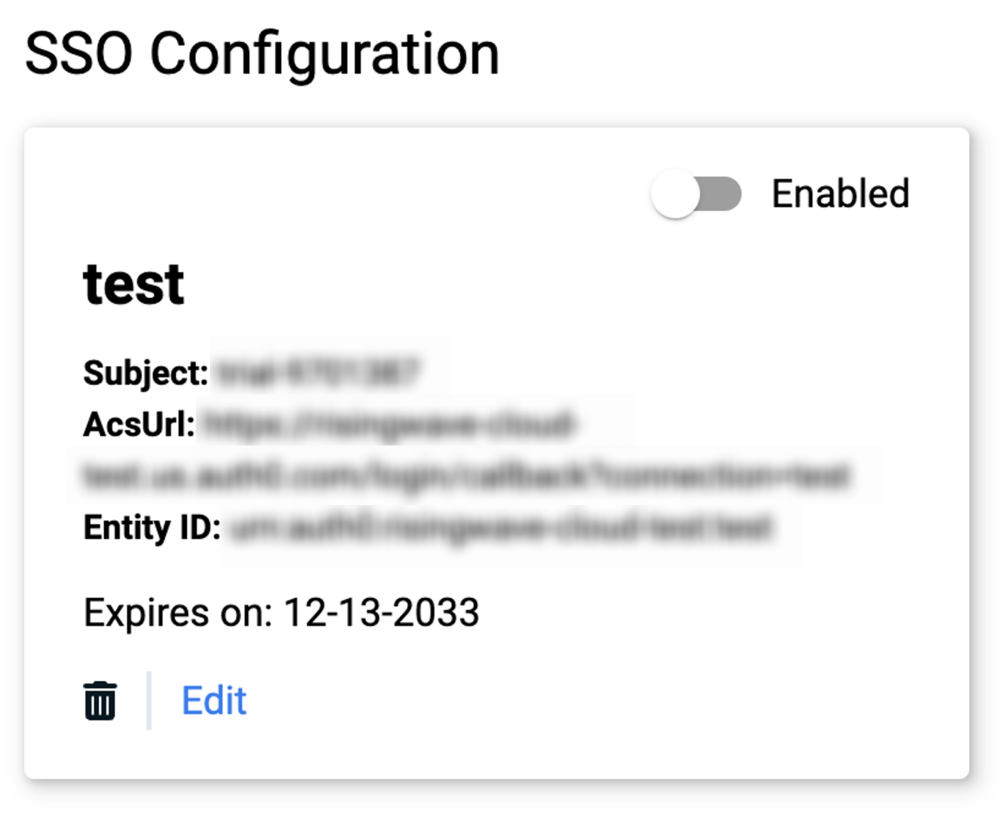 on the SSO configuration card on RisingWave Cloud.