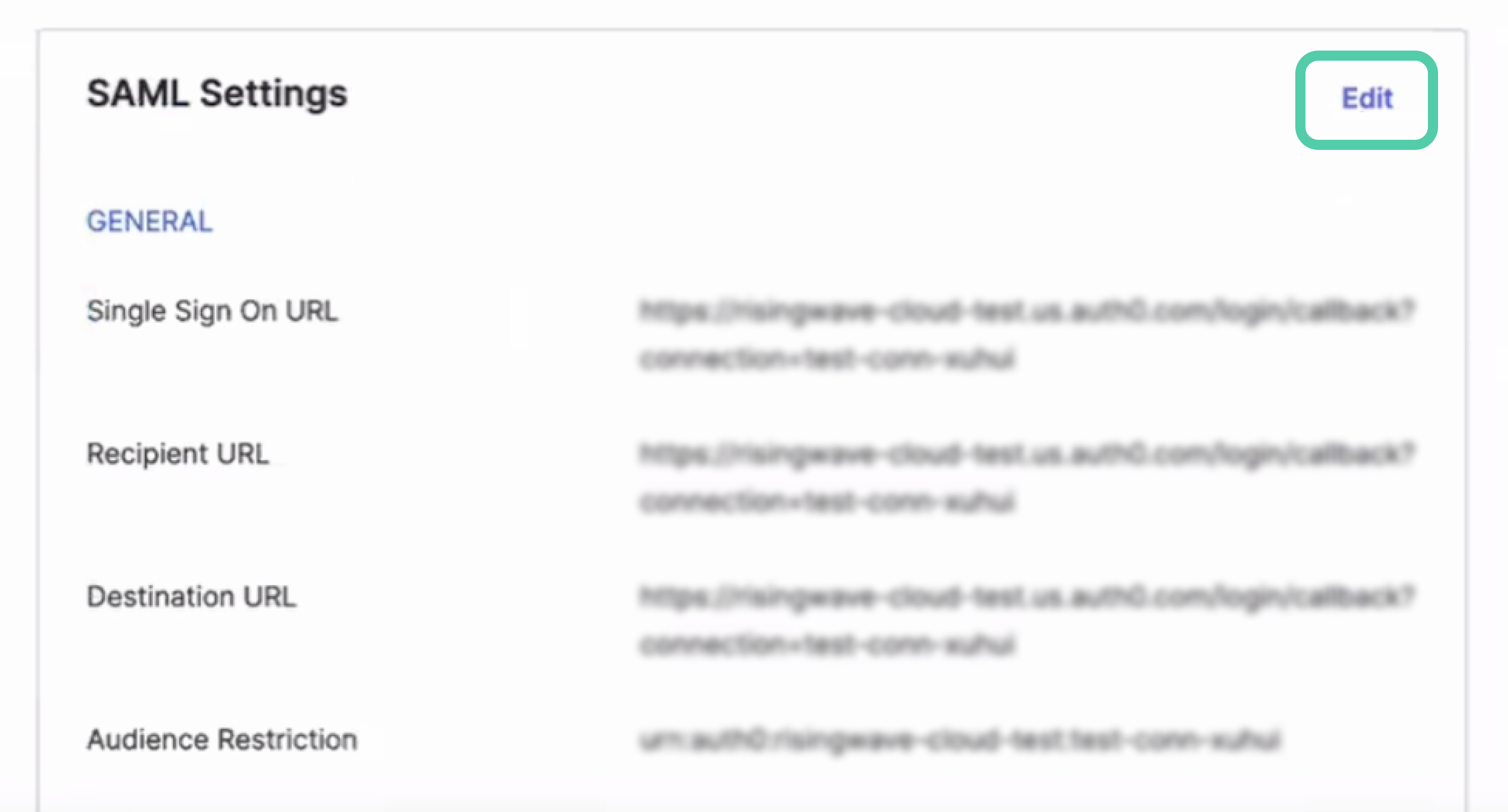- Scroll down to the SAML Settings section and click Edit.