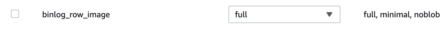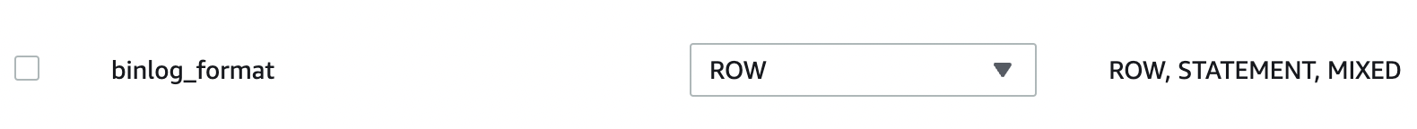- Click the MySQL-CDC parameter group to edit the values of binlog_format to ROW and binlog_row_image to full.