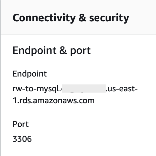 - From the Connectivity panel, we can find the endpoint and connection port information.